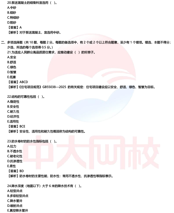 完整版2025年一级建造师考试建筑工程真题答案解析如下:
